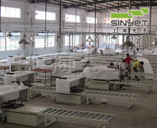 工藝陶瓷、衛(wèi)浴潔具生產(chǎn)線嚴(yán)格按照陶瓷制品的生產(chǎn)流程制定: 泥坯合模----初期上漿----產(chǎn)品開模----定型修坯----制造翻坯----模具干燥----濕坯修整----干燥存放----預(yù)檢線----機械噴釉線----施釉生產(chǎn)線----燒成線----隧道窯爐燒制線----拋光整修線----產(chǎn)品檢測線----包裝滾筒輸送線----倍速鏈輸送線----運輸升降機----重型導(dǎo)軌輸送線 ----自動包裝線----輸送入庫。