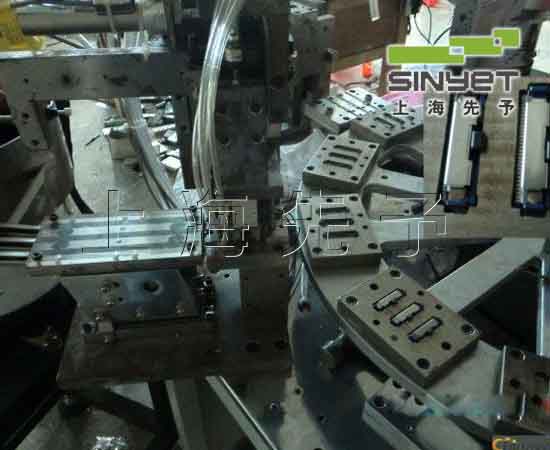 設(shè)備生產(chǎn)組裝順序: 塑料小蓋– 刀片1 – (中間片)夾片 1– 刀片 2– 夾片2刀 - 刀片 3– 塑料大蓋– 熱鉚合工位 – 裝入護(hù)罩 - 出料;