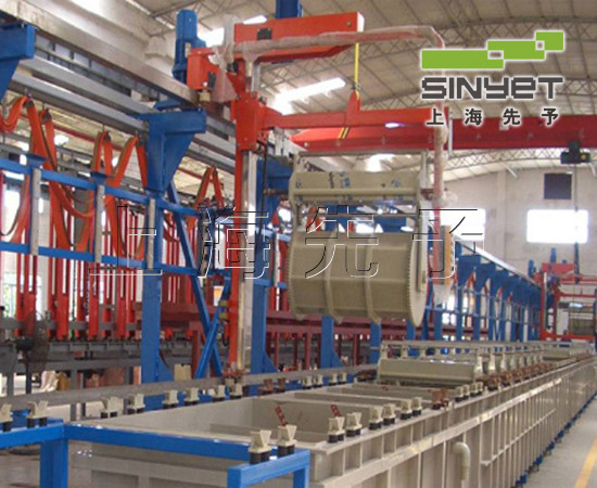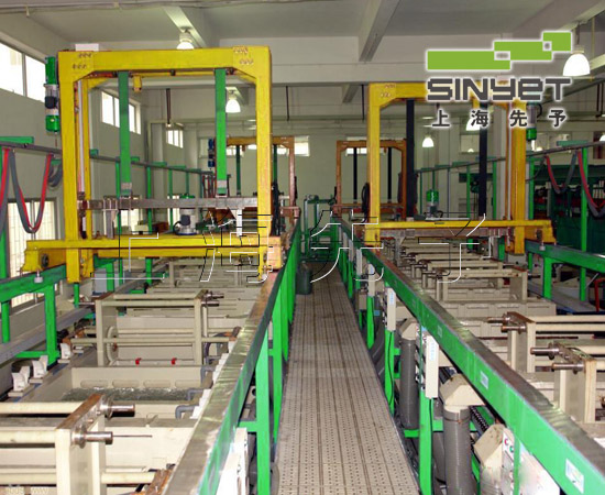 工藝塑料電鍍生產(chǎn)線采用了PLC(可編程序控制器)來實(shí)時監(jiān)控行車的自動運(yùn)行,同時實(shí)時監(jiān)控全線的設(shè)定參數(shù)的自動執(zhí)行,并可以與計算機(jī)相聯(lián),進(jìn)行生產(chǎn)的自動化數(shù)據(jù)管理,即DMS系統(tǒng)。 行車分為龍門式和懸臂式。行車的提升采用尼龍增強(qiáng)帶,使用時噪音極小且無需潤滑。滾鍍線可以加裝滾筒自轉(zhuǎn)滴液裝置。行車起重能力有50Kg到1000Kg不等,全部采用進(jìn)口剎車電機(jī)。